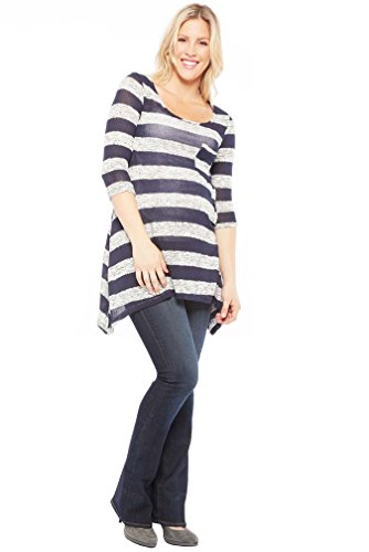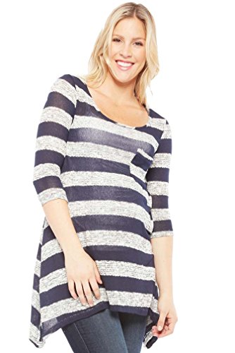 流れると楽しいストライプニットセーターに紺とグレーのストライプ。お気に入りのかわいいポケット詳細があり、3 / 4スリーブ長さが表示されます。カジュアルにレギンスやお気に入りジーンズの無理のない雰囲気になっていますこれは軽量かつ薄手のニットで構成されています。そのためあなたの下から、キャミやタンクを着用する。レーヨン55、41 %ポリエステル、4 %スパンデックス。洗濯機の、穏やかなサイクル。平干ししてください。アメリカ製。