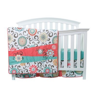waverlyâ ®ポンポンPlay 4ピースベビーベッド寝具セット山形/花のデザインキルト、ベビーベッドスカート、含まれている2ベビーベッドシーツ