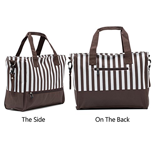 NOTAG マザーズバッグ 軽量 2way ママバッグ おしゃれな ベビー用品収納バッグ 大容量 縞柄 哺乳瓶 バッグ ハンドバッグ トート ショルダーバッグ ストラップ付き 旅行用 (ブラウン 2)