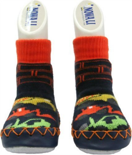「ベビーモカシン ビルダー ネイビー S」は、靴下と室内履きが一体化したソックスシューズです。靴下部分のニットが足にフィットし、靴部分は柔らかく足の形に馴染むので脱げにくく、歩き始めのベビーでも使えます。底は、牛側スウェードで洗濯機(ネット使用)洗いもできます。スウェーデンの自社工場で編まれ、いまだ人の手によって組みあげられています。 材質 綿85%・ナイロン10%・ポリウレタン5%・底面/牛革100%