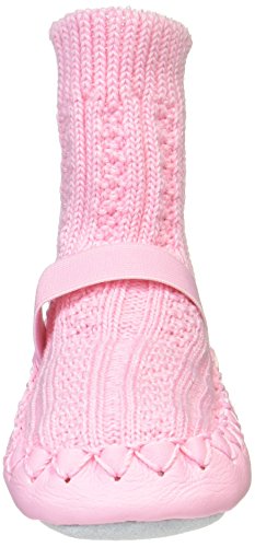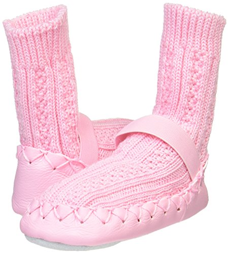 「ベビーモカシン ピンク S」は、靴下と室内履きが一体化したソックスシューズです。靴下部分のニットが足にフィットし、靴部分は柔らかく足の形に馴染むので脱げにくく、歩き始めのベビーでも使えます。底は、牛側スウェードで洗濯機(ネット使用)洗いもできます。スウェーデンの自社工場で編まれ、いまだ人の手によって組みあげられています。 材質 綿85%・ナイロン10%・ポリウレタン5%・底面/牛革100%