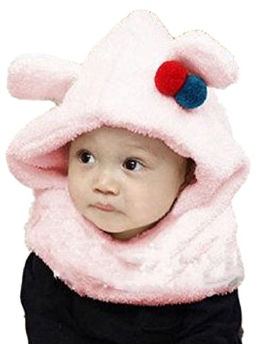 【Next house】 選べる5色 ベビー & キッズ 用 かわいい クマ 耳 フードウォーマー ネックウォーマー 【Next house】 (ピンク)