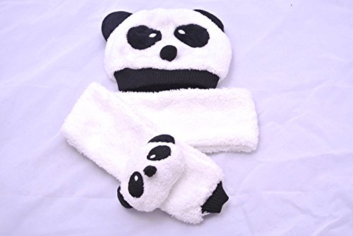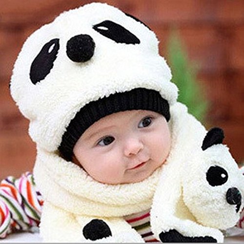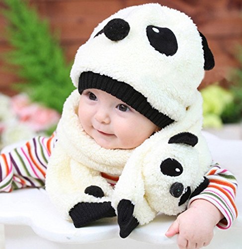 【Next house】選べる3色 ベビー & キッズ 用 かわいい パンダ 帽子 & マフラー セット (ホワイト カラー)