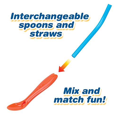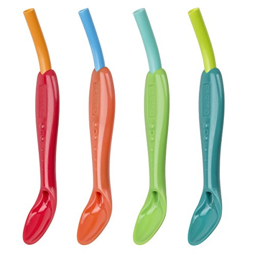 Sip and scoop with one utensil;Perfect for cereal, smoothies, ice cream, and more;Soft spoon tip gentle on teeth and gums;Includes (4) different colors of Interchangeable spoons and straws for mix-and-match fun;Dishwasher-safe and BPA-free