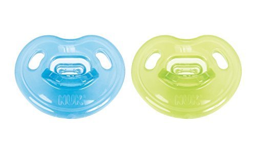 100% silicone one-piece construction, NUK Orthodontic shape nipple soothes and calms baby better than our original nipple and its asymmetrical shape helps promote healthy oral development by naturally fitting into your baby's palate, Scoop nipple cavity allows maximum tongue movement, which gently exercises your baby's tongue, palate and jaw and promotes proper teeth alignment by helping your baby avoid thumb-sucking, Heart shaped shield fits perfectly under baby's nose for easy breathing and less irritation, BPA free and made in the USA, Only one-piece pacifier with orthodontic nipple^Advanced orthodontic nipple promotes healthy oral development^Helps soothe and comfort baby
