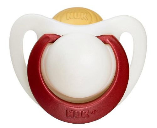 NUKジーニアスおしゃぶりを使った口腔トレーニングは新進の健やかな発育の第一歩です。 NUKおしゃぶりの特徴 ○NUKのオーソンディック形状は、授乳時のママにニップルに近い形を再現します。 ○口腔に適したスペースを確保するため幅は広く、さらに先端は舌の動きを妨げにくい形状 ○シールド左右のスリットと溝は、空気とよだれが逃げる 形状で赤ちゃんのお肌を守ります。 ○改良を加えたニップルはより滑らかなラウンドとなり、柔らかく、曲がりやすくなりました。 それにより歯にかかる圧を最小限に抑えます。 ○おしゃぶりにエアーシステム機能がついており、ニップルを通って空気が抜けることで、柔らかさと形状を維持することができます。2個セット(Amazonより出荷/通常送料無料 )も準備中。