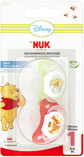 NUK(ヌーク)くまのプーさん シリコン スーザー(おしゃぶり)は、赤ちゃんの口の形に合わせて特別にデザインされた歯列矯正形状を持ち、唇、舌、顔の筋肉の運動を助け、歯と顎の両方の健全な成長を促します。ディズニー スーザーの平らな形は、当たるのを防ぎ、赤ちゃんの口から離れることのないようにします。すべてのNUK(ヌーク)スーザーは、マウスピースの柔らかさとしなやかさを保つNUK(ヌーク)エア システムを採用し、統合された溝は、赤ちゃんの口から唾液を流れ出せるようにし、口の周りの皮膚がかぶれないようにしています。