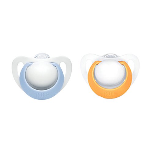 NUKジーニアスおしゃぶりを使った口腔トレーニングは新進の健やかな発育の第一歩です。NUKおしゃぶりの特徴 ○NUKのオーソンディック形状は、授乳時のママにニップルに近い形を再現します。 ○口腔に適したスペースを確保するため幅は広く、さらに先端は舌の動きを妨げにくい形状 ○シールド左右のスリットと溝は、空気とよだれが逃げる 形状で赤ちゃんのお肌を守ります。 ○改良を加えたニップルはより滑らかなラウンドとなり、柔らかく、曲がりやすくなりました。 それにより歯にかかる圧を最小限に抑えます。 ○おしゃぶりにエアーシステム機能がついており、ニップルを通って空気が抜けることで、柔らかさと形状を維持することができます。 ★XSはSでは大きすぎるお口の小さなお子様にもお試し下さい。