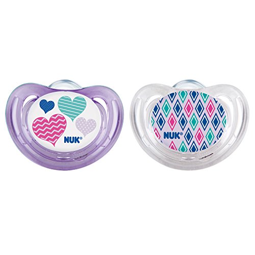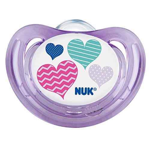 Unique shield shape enables 3x more air flow for less skin irritation; fits perfectly under baby's nose;Features NUK Advanced Orthodontic Nipple; true orthodontic shape helps promote natural development of jaw and teeth;Promotes proper teeth alignment by helping your baby avoid thumb-sucking;BPA Free, Silicone Nipples, Made in Germany;Size 6-18 months; comes in adorable heart design