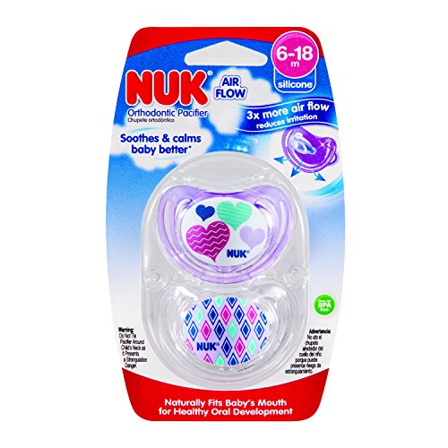 - NUK Airflow Orthodontic Pacifier with Hearts Design, 6-18 Months