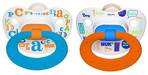 NUK Baby Talk Puller Pacifier, 0-6 Months, Blue/Orange