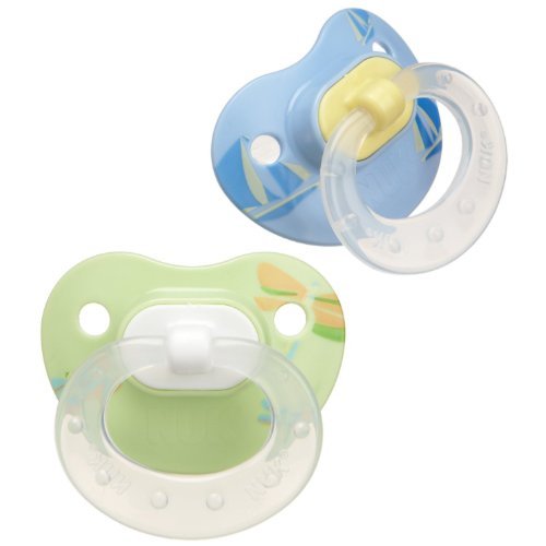 NUK 2 Pack Designer Pull BPA Free Silicone Pacifier, Baglet, Size 2, Blue/Green by NUK
