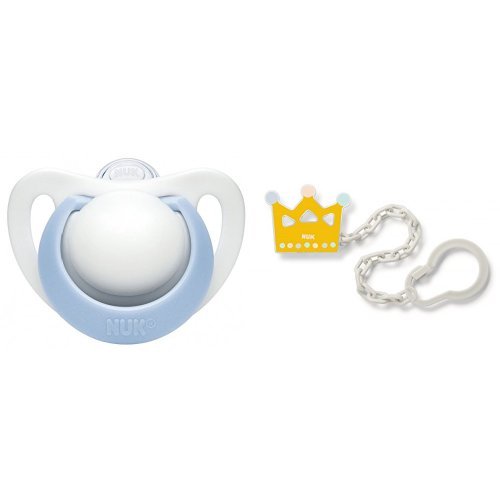 【セット買い】 NUK おしゃぶり ジーニアス2.0/S/シリコーン/ブルー OCNK0230102 + NUK おしゃぶりホルダー/クラウン BCNK0010103