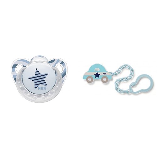 【セット買い】 NUK おしゃぶり NUK おしゃぶり・トレンドライン(キャップ付) NUK おしゃぶり・トレンドライン(キャップ付)/S/シリコーン/ブルースター OCNK5010114 + NUK おしゃぶりホルダー/カー BCNK0010102
