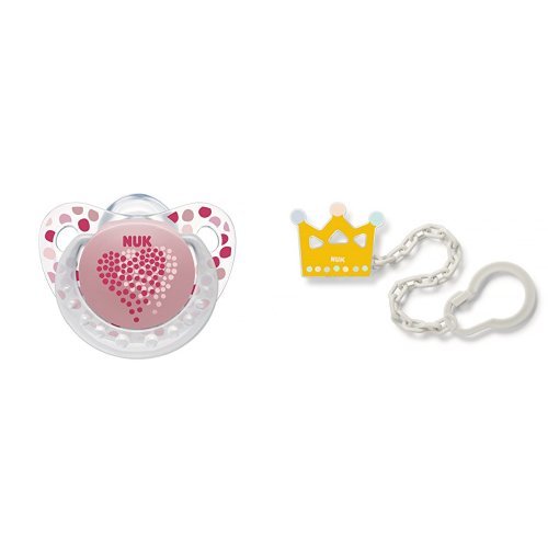【セット買い】 NUK おしゃぶり NUK おしゃぶり・トレンドライン(キャップ付) NUK おしゃぶり・トレンドライン(キャップ付)/S/シリコーン/ローズハート OCNK5010115 + NUK おしゃぶりホルダー/クラウン BCNK0010103