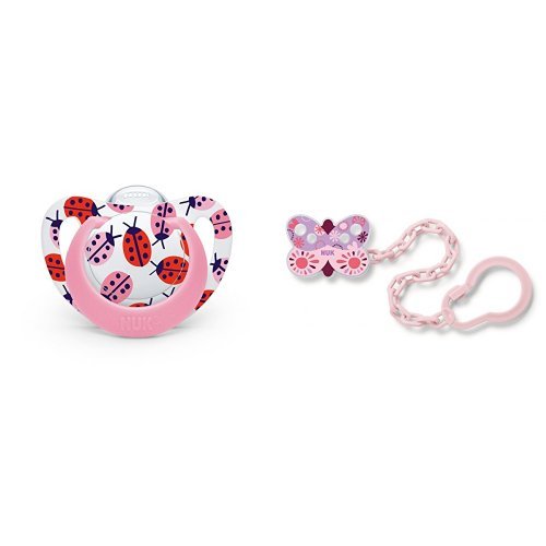 【セット買い】 NUK おしゃぶり ジーニアス2.0/M/シリコーン/レディバグ OCNK4020113 + NUK おしゃぶりホルダー/バタフライ BCNK0010101