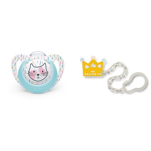 【セット買い】 NUK おしゃぶり ジーニアス2.0/S/シリコーン/こねこ OCNK4010112 + NUK おしゃぶりホルダー/クラウン BCNK0010103