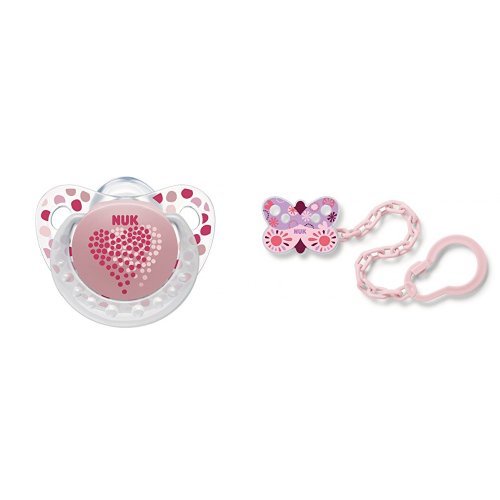 【セット買い】 NUK おしゃぶり NUK おしゃぶり・トレンドライン(キャップ付) NUK おしゃぶり・トレンドライン(キャップ付)/M/シリコーン/ローズハート OCNK5020115 + NUK おしゃぶりホルダー/バタフライ BCNK0010101