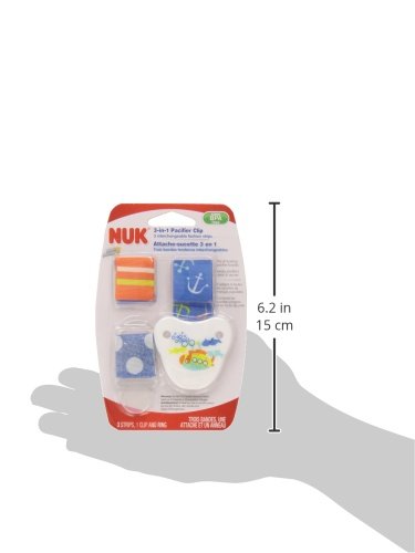 Designs may vary;3-in-1 Pacifier Clip helps keep pacifier clean and off the floor;Fits most pacifiers (both pullers and buttons);Easy-to-use and interchangeable;Plastic clip opens easily with one hand and is safe for baby;Works with ALL leading pacifier brands^Safe 1-piece design^Easily attaches to button or ring design pacifiers