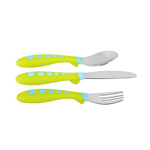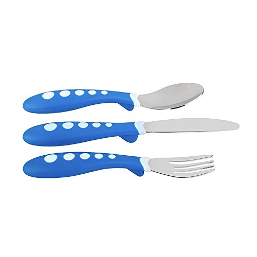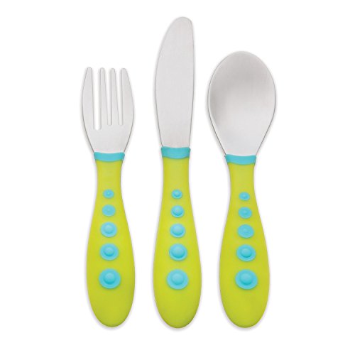 Color:Colors May Vary Product Description The Gerber Graduates Kiddy Cutlery Set will help you teach your little one to feed himself or herself with ease! The soft, comfort-grip handles are sized just right to help promote safe, independent eating every bite of the way. The rest easy support helps keeps germs off the utensils and mess off the table! This set includes (1) fork, (1) spoon and (1) knife in assorted bright colors and is designed for children 18-months and older. Durable stainless steel tips are dishwasher safe and the entire silverware set is BPA-free. The NUK family of brands designs safe and fun products that encourage your baby's development. NUK is committed to nurturing your children's healthy transitions from birth to toddler and has worked for over 50 years to design high quality, innovative products that are scientifically proven to support safe and healthy development. Visit www.amazon.com/nuk for all your baby and toddler needs. From the Manufacturer Gerber graduates kiddy cutlery set comes with 3 utensils.
