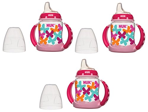 Spill-proof, soft spout is designed to be gentle on gums while teaching baby to drink from a spout;Helps make the transition from bottle to cup easier; Air vent helps reduce swallowing air;Easy-grip, anti-slip handles are easy for baby to hold and removable as baby ages;Flows easily when sipped; Extra wide neck for easier cleaning and filling;Silicone spout; 5oz