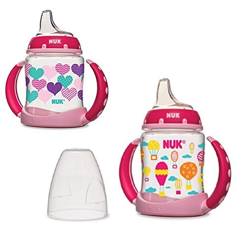 NUK 2 Count Pretty In Pink Leaner Cup, 5 oz (Hot Air Balloon/Hearts) by NUK