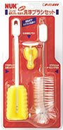 哺乳びん・乳首の洗浄に便利なナイロンブラシ、スポンジブラシ、乳首専用ブラシの3点セット。