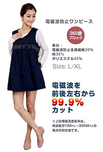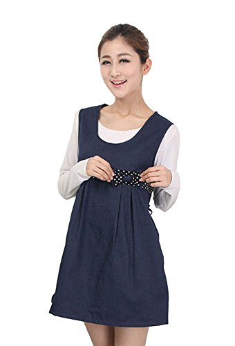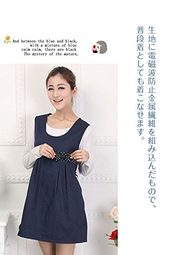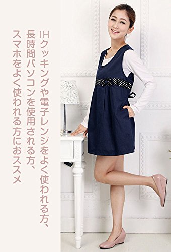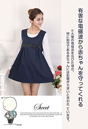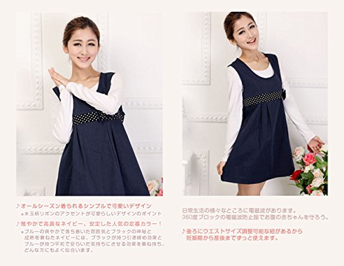 電磁波防止服 99.9%の遮断率 マタニティ 妊婦 NUOBAOKANG 格安 電磁波カットエプロン 水玉のリボン 可愛いデザイン ネイビー (XL)