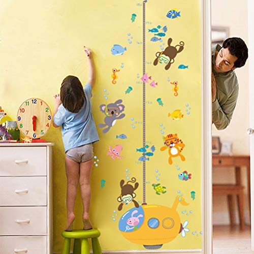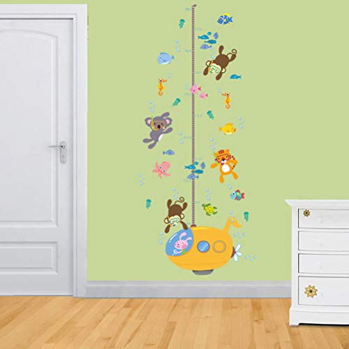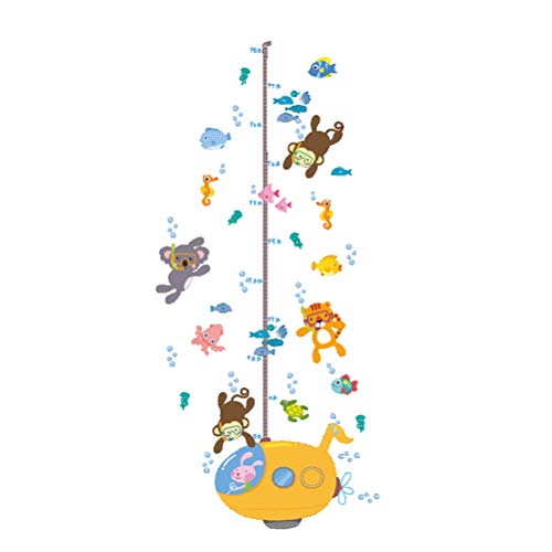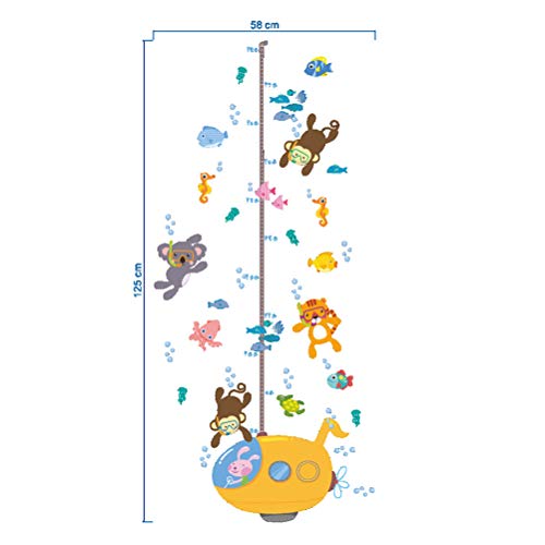 1 *水中潜水獣動物ダイバーかわいいモンキータイガーの高さステッカー成長の高さのグラフ取り外し可能な壁のデカールの子供の子供の赤ちゃんのホームルームの保育園DIYの壁に壁の壁画