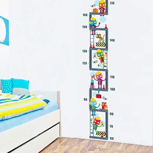 1×取り外し可能なDIY PVCの漫画のロボットは、階段を登る子供の高さの測定ルーラーの保育園の成長の壁の壁のステッカーの壁ホーム壁の装飾アートベッドルームリビングルーム