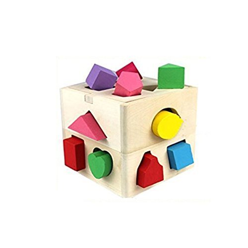 The toy is a set of composed of a wooden box with colorful wooden building blocking of different shape. the children learns to distinguish between shapes and colors through coordinated eye and hand movements. Kids' observe ability is improved!