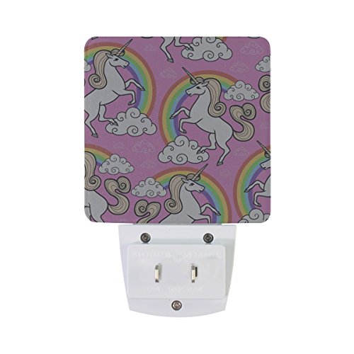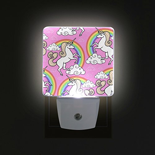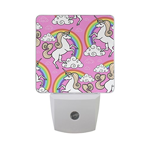naanleのセット2 Cartoonユニコーン動物柄レインボーホワイトクラウドピンク背景オートセンサーLED Dusk to Dawnナイトライトプラグinインドアfor Adults
