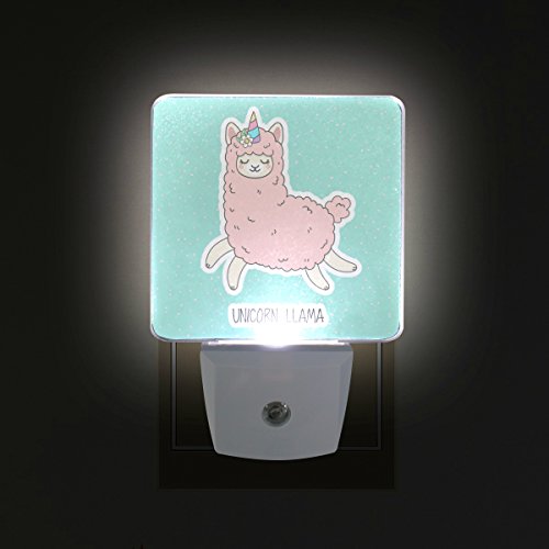 naanleのセット2キュートピンクユニコーンLlamaアルパカwith Dot Cartoon Character Funny Smile動物ブルーオートセンサーLED Dusk to Dawnナイトライトプラグinインドアfor Adults