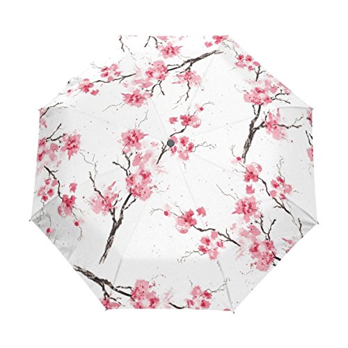 Naanle Watercolor Pink Sakura Cherry blossom Auto Open Close Foldable Travel Umbrella