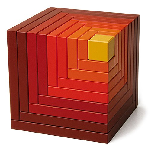 ペア・クラーセンがデザインし、1980年に発表されたスイス・Naef(ネフ社)を代表する積み木「セラ」です。 「セラ」は、1968年に発表された「キュービックス」を発展させた入れ子型のピースの積み木です。 「キュービックス」と同様に、「セラ」も1辺10cmの立方体を9つのピースに分解した構成となっています。 立方体を解体して、立体的な幾何学形を造形してみましょう! 「セラ」を積み上げるには、バランスを見極める力が必要です。 積み上げては、失敗し、また積み上げて、何度も繰り返して挑戦してみましょう。 美しい造形物を作り上げた時に、大きな満足感を得ることができるはずです! お子さまだけでなく、お母さん・お父さんも夢中になるかも? 「セラ」は、数学的で芸術的な要素を多分に含んだ積み木です。 お子さまのおもちゃとしてだけでなく、大人の方はオブジェとしても親しまれています。 デザイン性だけでなく、品質も高い木のおもちゃは、お誕生日プレゼントにもオススメです! ネフ社のスタイリッシュなパッケージも素敵です。 「セラ」の立方体を入れ子のように分割した構造と、5色のグラデーションの色彩が見せる造形の美しさは秀逸です。 「両手で包み込めるこの立方体に宇宙の原理が内蔵されている」と、ペア・クラーセンは語っています。