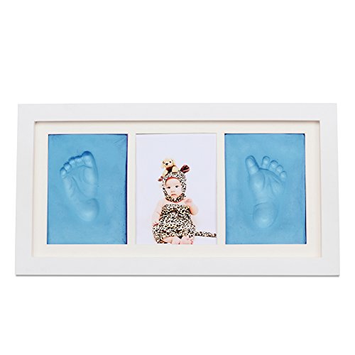 NaiFeiフォトフレームクラシックの幼児の幼児の赤ん坊の男の子/女の子手形またはフットプリントフレーム記念品ギフト (ライトブルー)