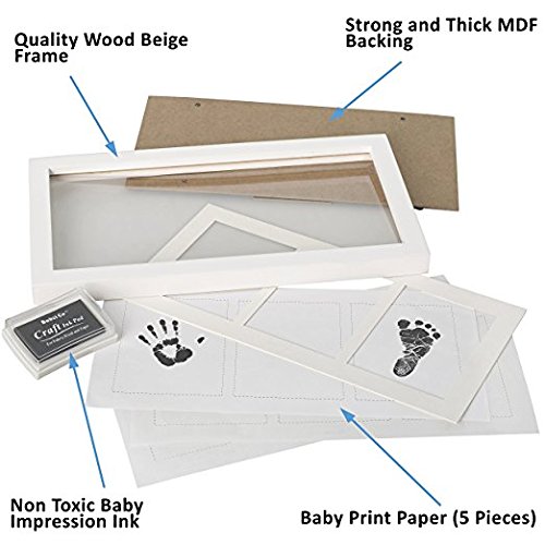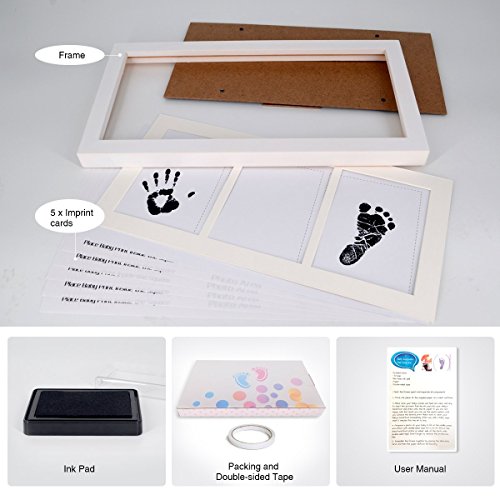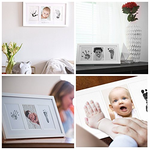 - 最高のサイズ:混乱しないで使いやすく:詳細なプリントを実現「クリーンタッチ」インクパッドと5枚のインプリントペーパーカードを搭載。インクパッドは最大2回使用できますが、11×9cmまでの手足に対応し、新生児専用です、手仕上げ、ハンガー付きの白い木枠で簡単に壁に取り付けることができ、フォトインサートは11×9cmの写真を1枚保持します。フレームは33 * 18 * 2cmを測定します。