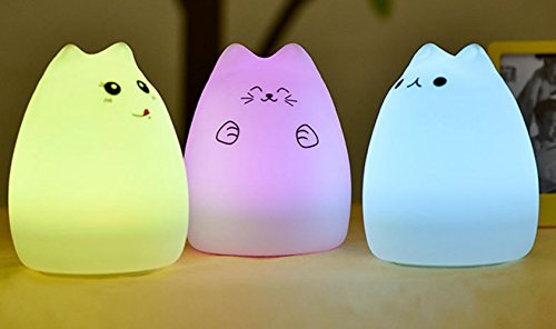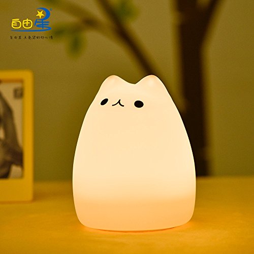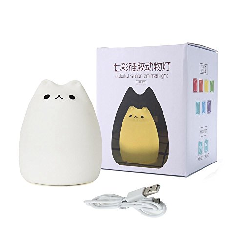 LED子供の夜の光の子供のシリコーンキャットランプ7色、USB充電式照明、暖かい白色光 (セレブ猫)