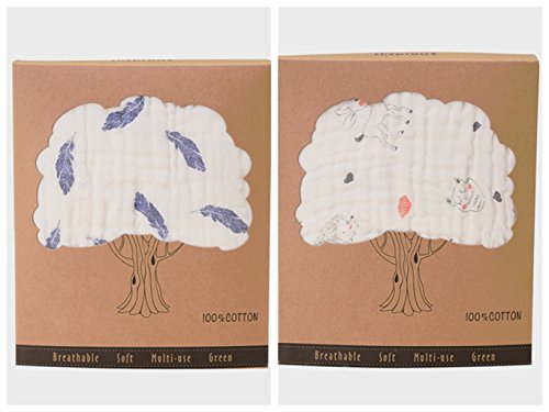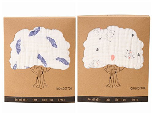 毛布ベビーシャワーやグレート保育園ギフトを受け取った2パック認定綿100%オーガニックモスリン押さえつけるソフト6層コットン (L-404)
