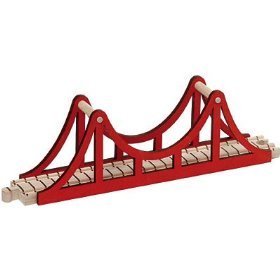 Create your own San Francisco Bay area with our 12" suspension bridge. Can lay flat on the track table or it can span the distance using our bridge supports and ascending/decending tracks that are sold separately on Amazon.com. Colored in red using non-toxic colors.