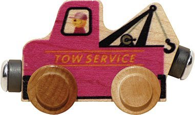 Just the assistance you need for accessory vehicle mishaps The NameTrain Tow Truck is crafted from local sustainably harvested native maple hardwood and is compatible with our and other wooden railway systems. Measures approximately 3" long by 1-3/4" high. Strong magnets allow you to attach to your name or make a special train. Non-toxic finish.