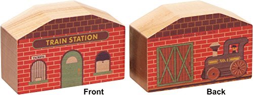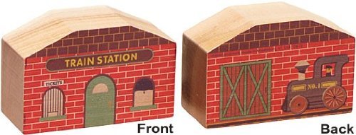 No NameTrain village is complete without a Train Station. Train Station is also available as a part of the Town Set. The Train Station measures about 2 3/4" high and about 1 3/4" wide. The train station is printed on both sides. Side one has a ticket window, side 2 the train engine is at the station.
