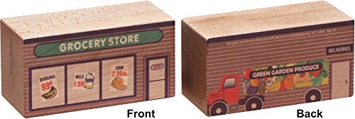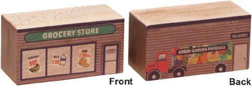 Add a store to your NameTrain village. Store is also available as part of the Town Set. The store measures about 2 3/4" high and about 1 3/4" wide. The front of the store has "specials" in the window and the back is getting a delivery from the Green Garden Produce company