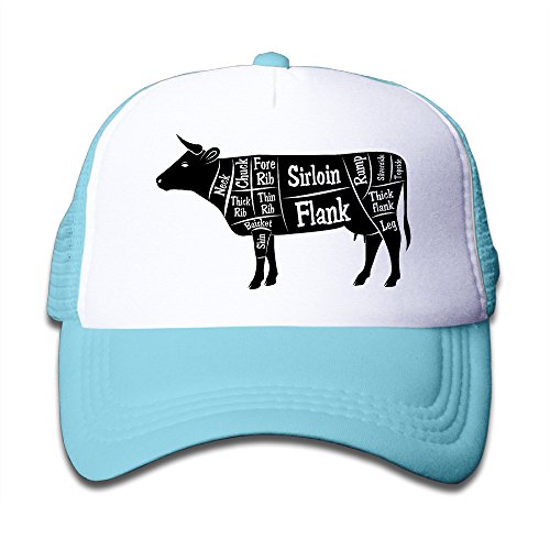 キッズ メッシュキャップ 通気性 大人気 ウトドア レジャー・キャップ 牛 ビーフ 肉 カット 日焼け止め 帽子 カジュアル ストーリート系ライトブルー プリント付き 無地