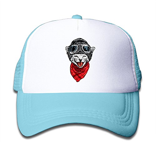 キッズ メッシュキャップ 通気性 大人気 ダンス ハット ハッピー 猫 アドベンチャー おしゃれ 帽子 カジュアル ストーリート系ライトブルー プリント付き 無地