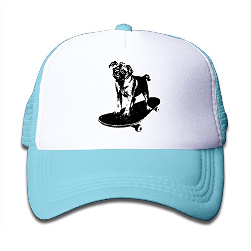 キッズ メッシュキャップ 通気性 今季最新 旅行 ハット スケートボード パグ 子犬 紫外線防止 帽子 カジュアル ストーリート系ライトブルー プリント付き 無地