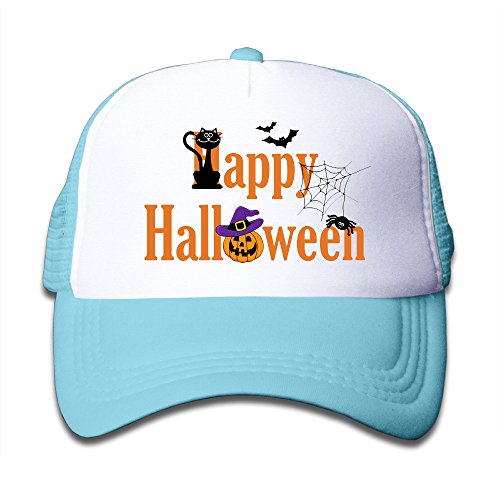 キッズ メッシュキャップ 通気性 大人気 ヒップホップ ハット ハロウィン パンプキン かぼちゃ バット 日焼け止め 帽子 カジュアル ストーリート系ライトブルー プリント付き 無地