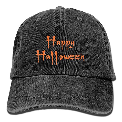 大人 デニム キャップハッピー ハロウィン バット 今季最新 旅行 レジャー・キャップ カジュアル 紫外線対策 日よけ 小顔効果 プリント付き 無地 ブラック