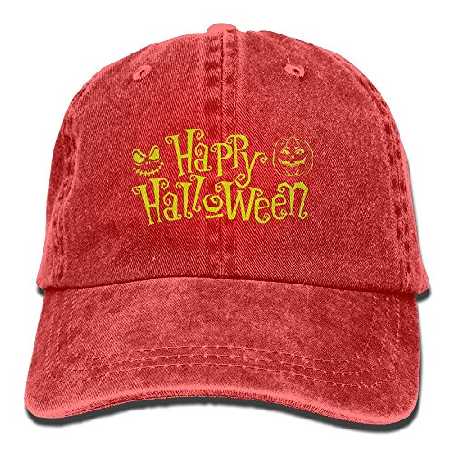 大人 デニム キャップハッピーハロウィン パンプキン かぼちゃ 今季最新 ダンスの帽子 レジャー・キャップ クール 紫外線対策 日よけ 小顔効果 プリント付き 無地 レッド