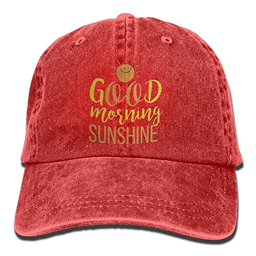 大人 デニム キャップグッド モーニング サンシャイン 英字柄 プリント 大人気 ヒップホップ キャップ UVカット 紫外線対策 日よけ 小顔効果 プリント付き 無地 レッド